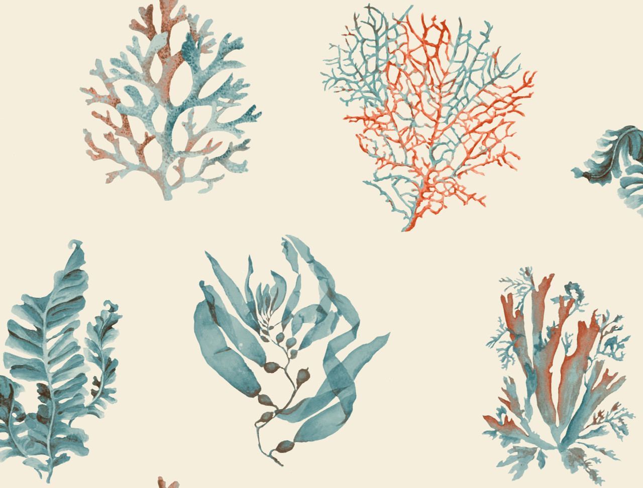 - Coastal Calm CM3360 - Seaweed Wallpaper Cream. A myriad of fascinating treasures underwater awaits you with this fanciful sea-themed Seaweed Wallpaper in Cream with colorful details of kelp, algae, sea fans, and other plants. Turn your indoors into a watery garden from our artist's design, to further inspire you. The Coastal Calm collection features wallpapers in perfect accordance with oceanic nature, to connect your indoors with their calm & soothing presence, which can be defined with any of the different designs, to your liking.
