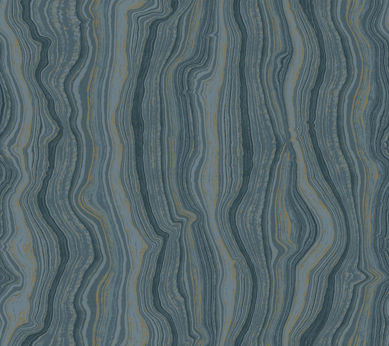 DF3321 - Mineral Shimmer Denim & Gold Wallpaper. Elevate your interiors with Candice Olson Decadence II, a sophisticated wallpaper collection blending modern geometrics, lush botanicals, classic damask, and rich textures. Designed for timeless elegance, these patterns bring depth, style, and designer appeal to any space. This wallpaper is packaged and sold as double roll, each double roll measure approximately 27 width (in) X 27 Length (ft) long and covers About 60.8 square feet. Product Repeat is 24. Product Match is Straight. Adhesion Type is Unpasted - Extra Washable - Strippable. Material is Non Woven. Color is Blues