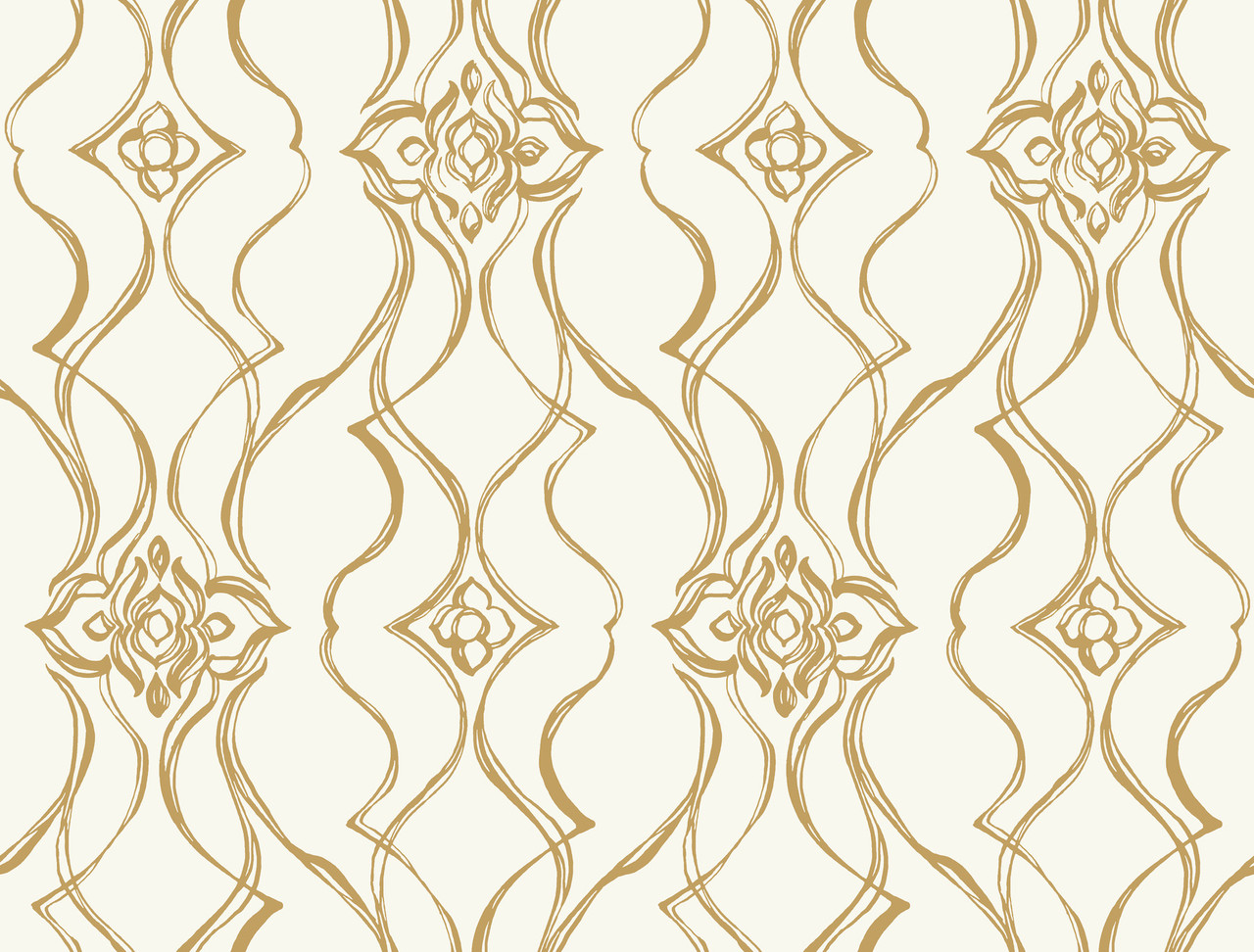 DF3372 - Pirouette White & Gold Wallpaper. Elevate your interiors with Candice Olson Decadence II, a sophisticated wallpaper collection blending modern geometrics, lush botanicals, classic damask, and rich textures. Designed for timeless elegance, these patterns bring depth, style, and designer appeal to any space. This wallpaper is packaged and sold as double roll, each double roll measure approximately 27 width (in) X 27 Length (ft) long and covers About 60.8 square feet. Product Repeat is 20.5. Product Match is Straight. Adhesion Type is Unpasted - Extra Washable - Strippable. Material is Non Woven. Color is Whites & Off-Whites