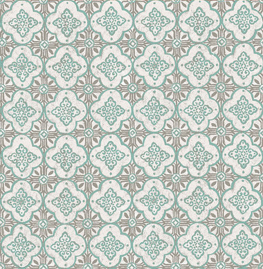 - The Geo Turquoise Quatrefoil 1014-001854 wallpaper from the Kismet collection features a pleasing geometric tiled design formed by graceful floral patterns repeated both vertically and horizontally. This wallpaper is available in different colorways. This option has turquoise tones. The pattern is straight match with a pattern repeat length of 10.5 inches.