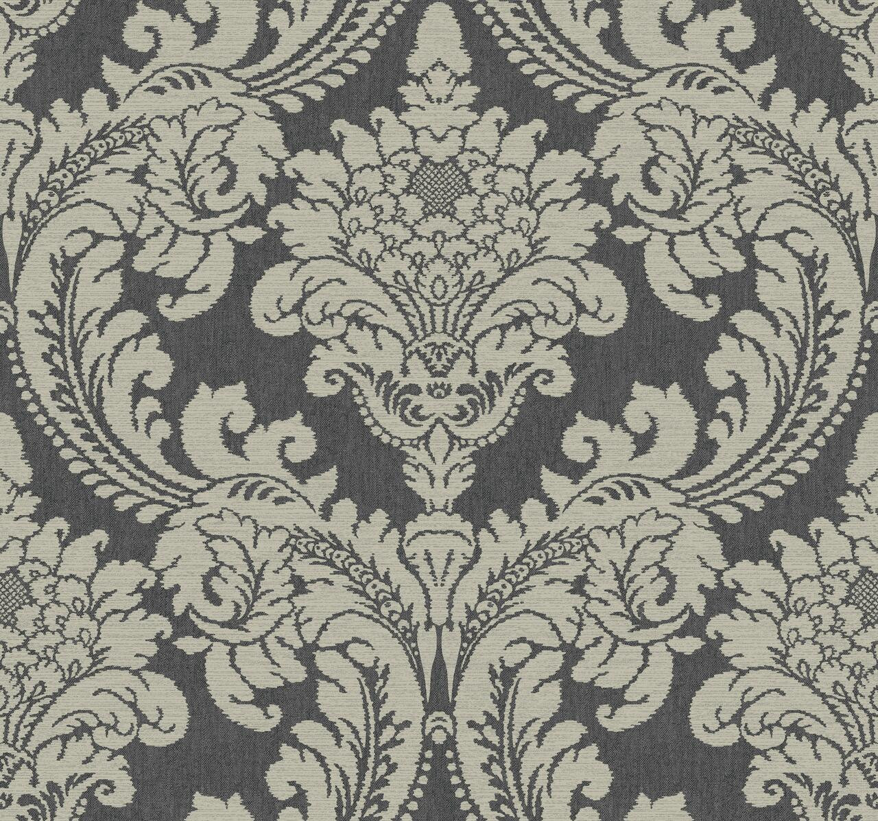 Click here for our calculator | Wallpaper Buying GuideGR6022 - Tapestry Damask Wallpaper. Grand millennial by York wall coverings is casual colorful patterns that mix with heritage and modern trends of wallpaper designs. The floral parts of the wallpapers look incredibly beautiful when it is placed on the wall. It is packaged and sold as a double roll and it measures approximately 27 in x 27 ft = 60.75 sq ft. Key Features: Prepasted - Washable - Strippable. Pattern Repeat is 25.25 in. Pattern Match is Straight. Pattern Theme is Damask. The color is Dark Gray