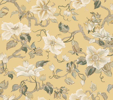 GT4515 - Marguerite Vine Yellow Wallpaper. Ronald Redding Wallpaper is durable and tightly woven from the best materials, it is a modern masterclass with a twist. These blended collections come with a mix of grasscloth, Bohemian, Botanical and Geometrics. It is sold and packaged as double roll, this double roll measures 27 inches wide by 27 feet long. measuring approximately About 60.8 square feet. Pattern Repeat is 24. Pattern Match is Drop. Pattern Material is Non Woven. Unpasted - Washable - Strippable. The color of this one is Yellows