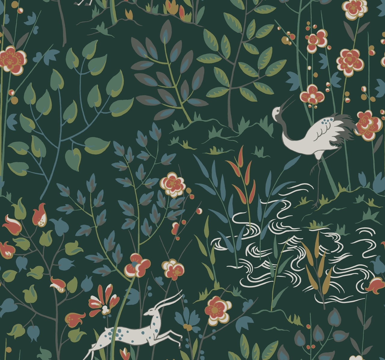 HO2126 - Aspen Wallpaper. Ronald Redding Traveler Wallpaper is made with beautiful designs in mind, the quality of the material used is essential and makes any decorations look it best. The prices are affordable for any design budgets. The theme is a mixed of geometrics, texture, damask, and botanicals. The dimensions are 27 in x 27 ft = 60.75 sq ft Packaged and sold as a double roll. Key Features: Unpasted - Washable - Wet Removable Pattern Repeat is 64.13 cm Pattern Match is Straight. The color is Dark Green