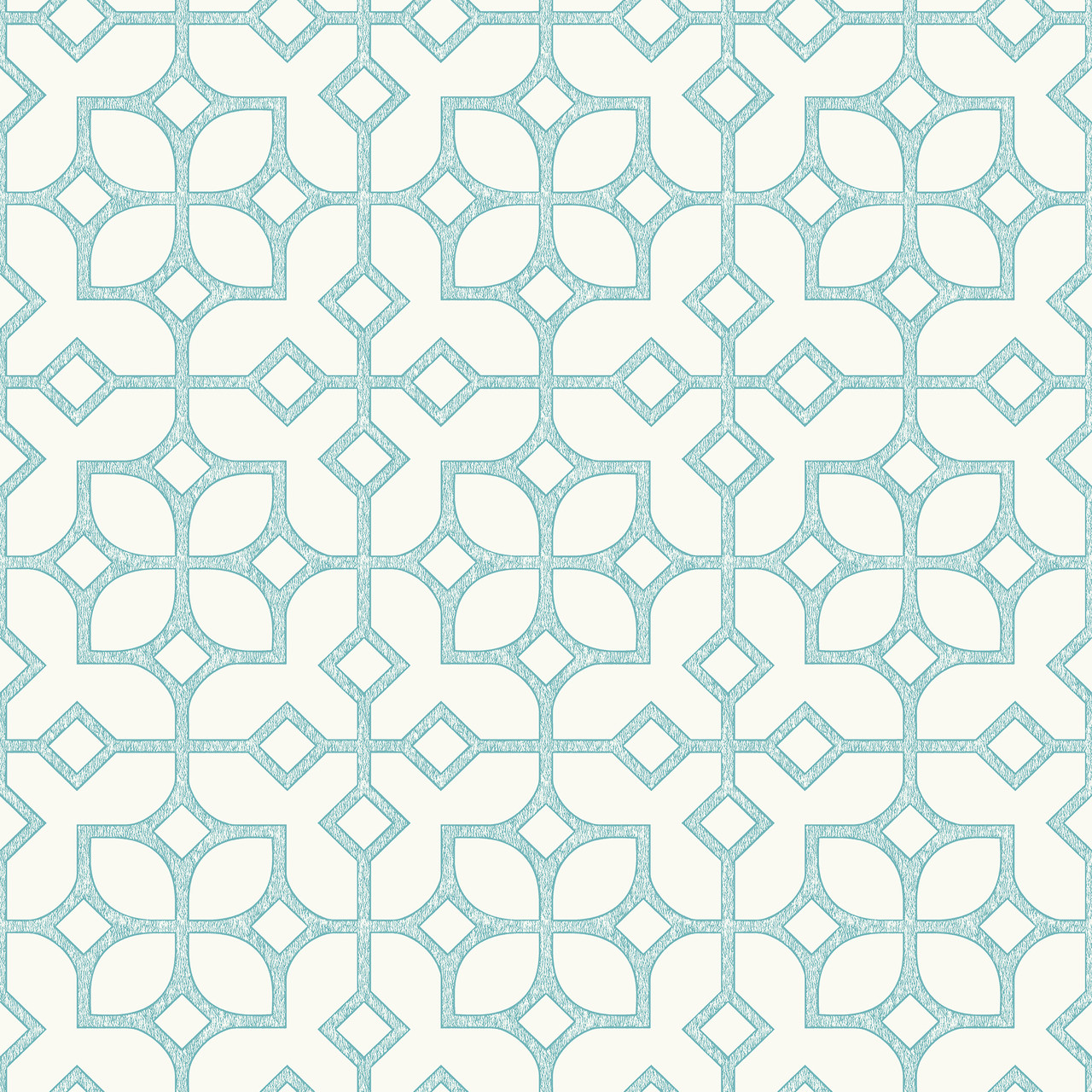 Maze Turquoise Tile 2697-78025 Wallpaper: This Chinese grid enlivened backdrop has a delightful turquoise blue print. A surface print surface includes an extravagant impact. The example has a blend of flower and geometric prints that are present day and beautiful. Warm outline feel characterizes the Maze Turquoise Tile Wallpaper, which would suit various stylistic theme subjects. The feature that it is washable attracts every heart towards it.