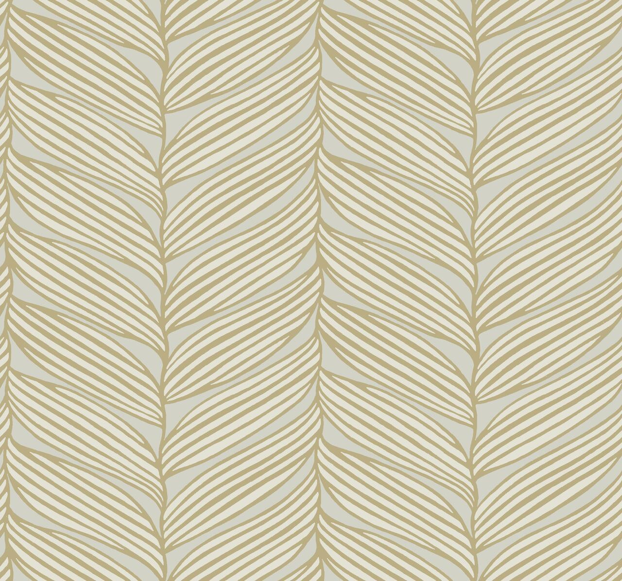 MD7162 - Neutral & Gold Luminous Leaves Wallpaper. Antonina Vella Modern second edition is here, and this contemporary wallpaper is even beautiful and energizes spaces with visual artery, and allure of luminous metallic. This wallpaper measures approximately 27 wide by 26.9 ft. long and covers About 60.5 square feet. Key Features: Unpasted - Non Woven - Washable - Strippable. Pattern Repeat is 12.6. Pattern Match is Straight. The theme is Tropical