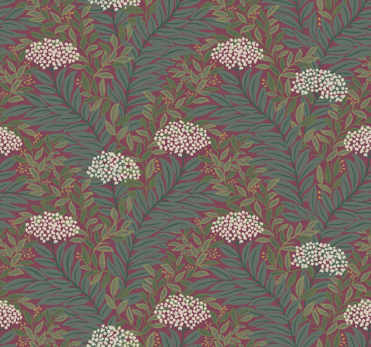 Click here for our calculator | Wallpaper Buying GuideRF7506 - Highgrove Burgundy Wallpaper. Inspired by York Wall coverings, Rifle Paper Co. 3rd Edition wallpaper designs is the new trend. The colorful paper is sold and packaged as double roll, this double roll measures approximately 27 inches wide by 27 feet long, measuring approximately About 60.8 square feet Product Repeat is 12.63. Product Match is Straight. Product Material is Non Woven. Special Specifications: Unpasted - Washable - Strippable. The color is Purples. The style is Traditional