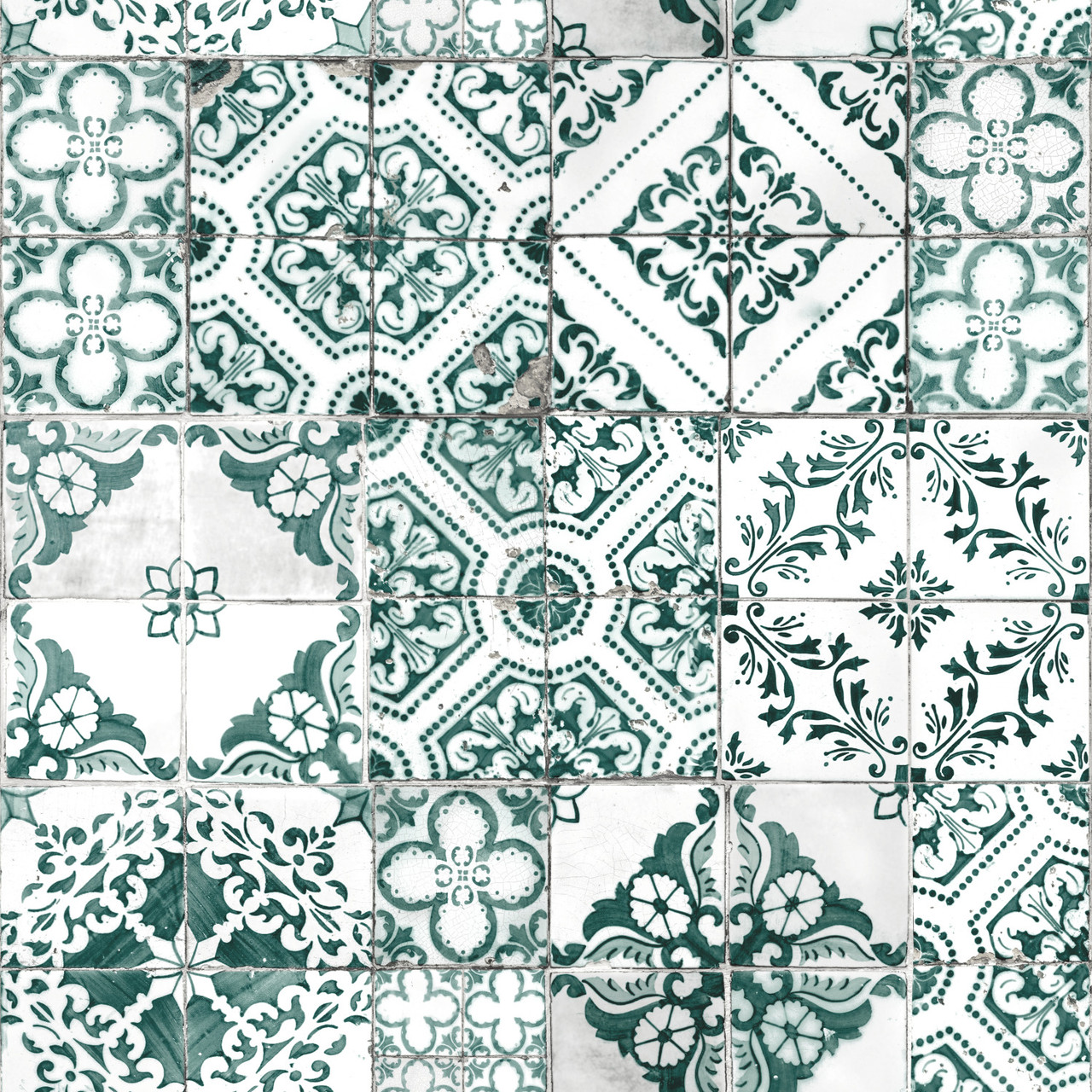 Click here for our calculator | Wallpaper Buying GuideRMK11281WP - Mediterranean Tile Teal Peel & Stick Wallpaper. York Wallcoverings brand RoomMate is elegance in style and beautiful when placed on a wall. This wallpaper can be use in children nursery, boysÕ and girlsÕ room to make it look good especially if you are look for a new look and feel. This Peel and Stick Wallpaper comes on one roll that measures 20.5 Inc in width X 16.5 FT. in length and covering About 28.2 square feet. Special Features: Adhesion Type is Peel & Stick. Material is Vinyl. Washability is Washable. Removability is Fully Removable. Pattern Repeat is 20.5. Pattern match is Drop. The color is Teal