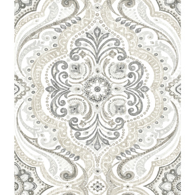 Click here for our calculator | Wallpaper Buying GuideRMK11937WP - Bohemian Damask Taupe Peel & Stick Wallpaper. York Wallcoverings brand RoomMate is elegance in style and beautiful when placed on a wall. This wallpaper can be use in children nursery, boysÕ and girlsÕ room to make it look good especially if you are look for a new look and feel. This Peel and Stick Wallpaper comes on one roll that measures 20.5 Inc in width X 16.5 FT. in length and covering About 28.2 square feet. Special Features: Adhesion Type is Peel & Stick. Material is Vinyl. Washability is Washable. Removability is Fully Removable. Pattern Repeat is 24. Pattern match is Straight. The color is Taupe