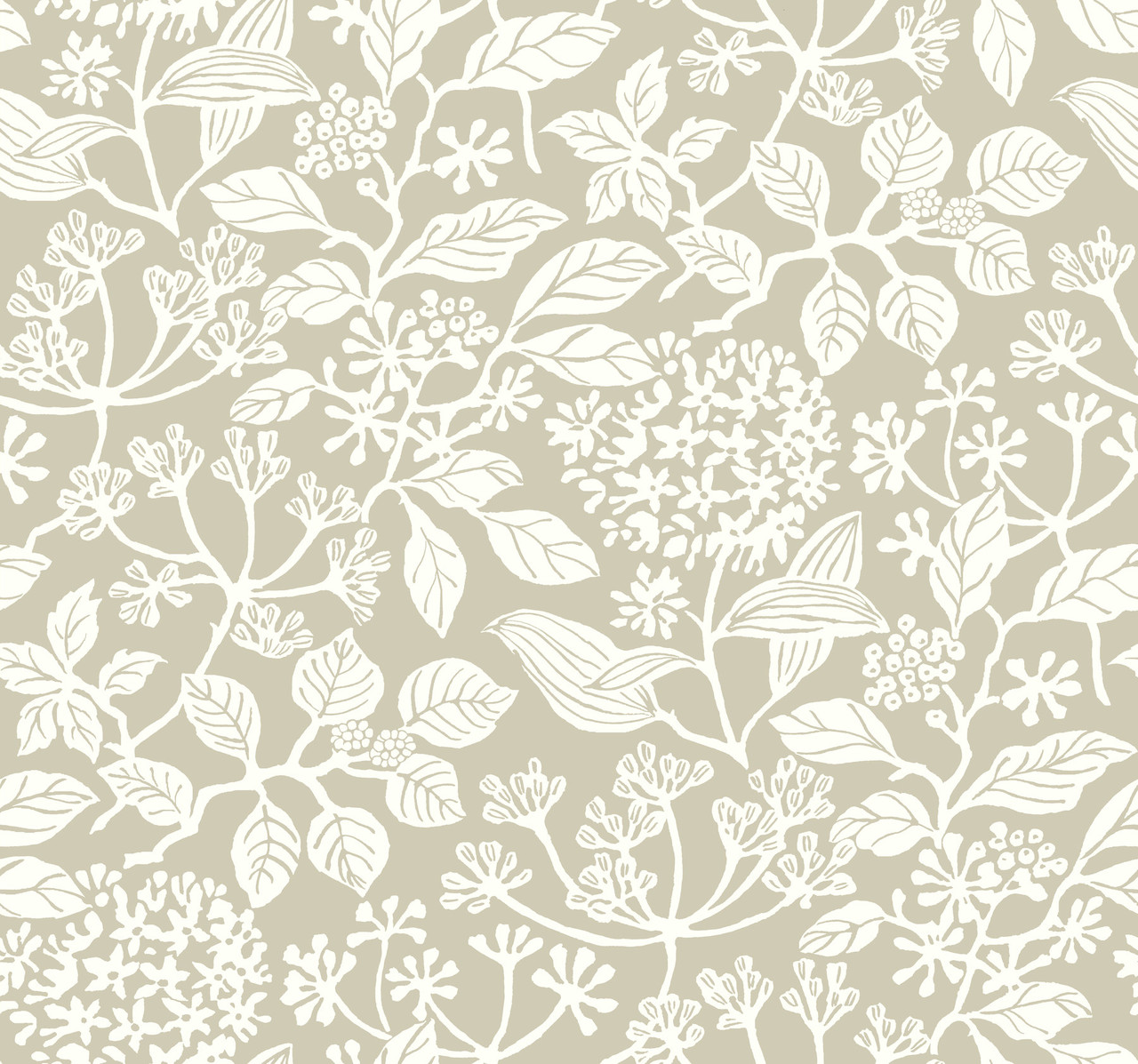 VP1344 - Rowen Taupe Botanical Wallpaper. Vintage botanical prints inspired by artisanal block printing celebrate the beauty of nature and gardens. This Rowen Taupe Botanical Wallpaper measures approximately 27 inches wide by 27 feet long, measuring. About 60.8 square feet . Product Specific: Unpasted - Non Woven - Washable - Strippable. Product Repeat 25.3. Product Match Straight. The color is Taupe