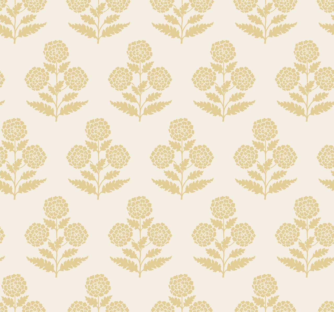 VP1432 - Souci Butter Marigolds Wallpaper. Vintage botanical prints inspired by artisanal block printing celebrate the beauty of nature and gardens. This Souci Butter Marigolds Wallpaper measures approximately 27 inches wide by 27 feet long, measuring. About 60.8 square feet . Product Specific: Unpasted - Non Woven - Washable - Strippable. Product Repeat 25.3. Product Match Straight. The color is Saffron